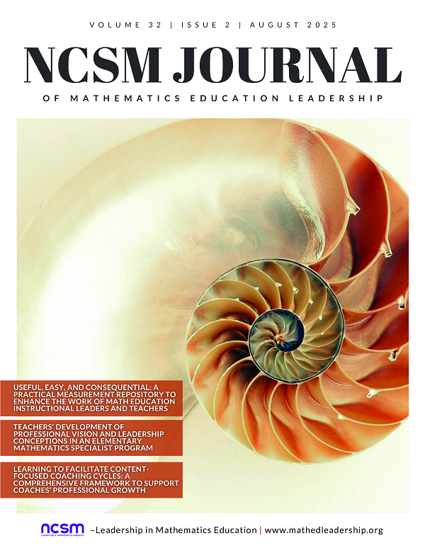- Proper attribution is given to the Journal of Mathematics Education Leadership, NCSM, and the authors, including a copyright notice, disclaimer notice, and a link to the material. Any modifications made to the original materials must be declared.